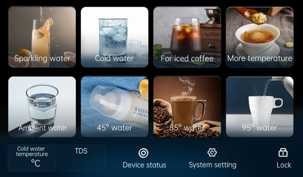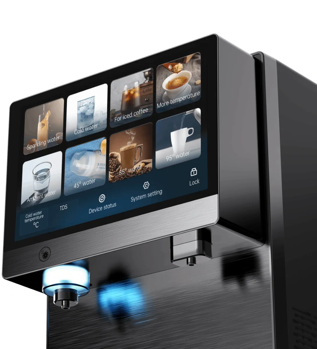 מסך טאץ’ צבעוני בגודל 7 אינץ’ מאפשר שליטה מלאה במזיגה, בחירת גודל כוס, בקבוק או ספל, ושליטה בפונקציות המכשיר בצורה קלה ואינטואיטיבית.
