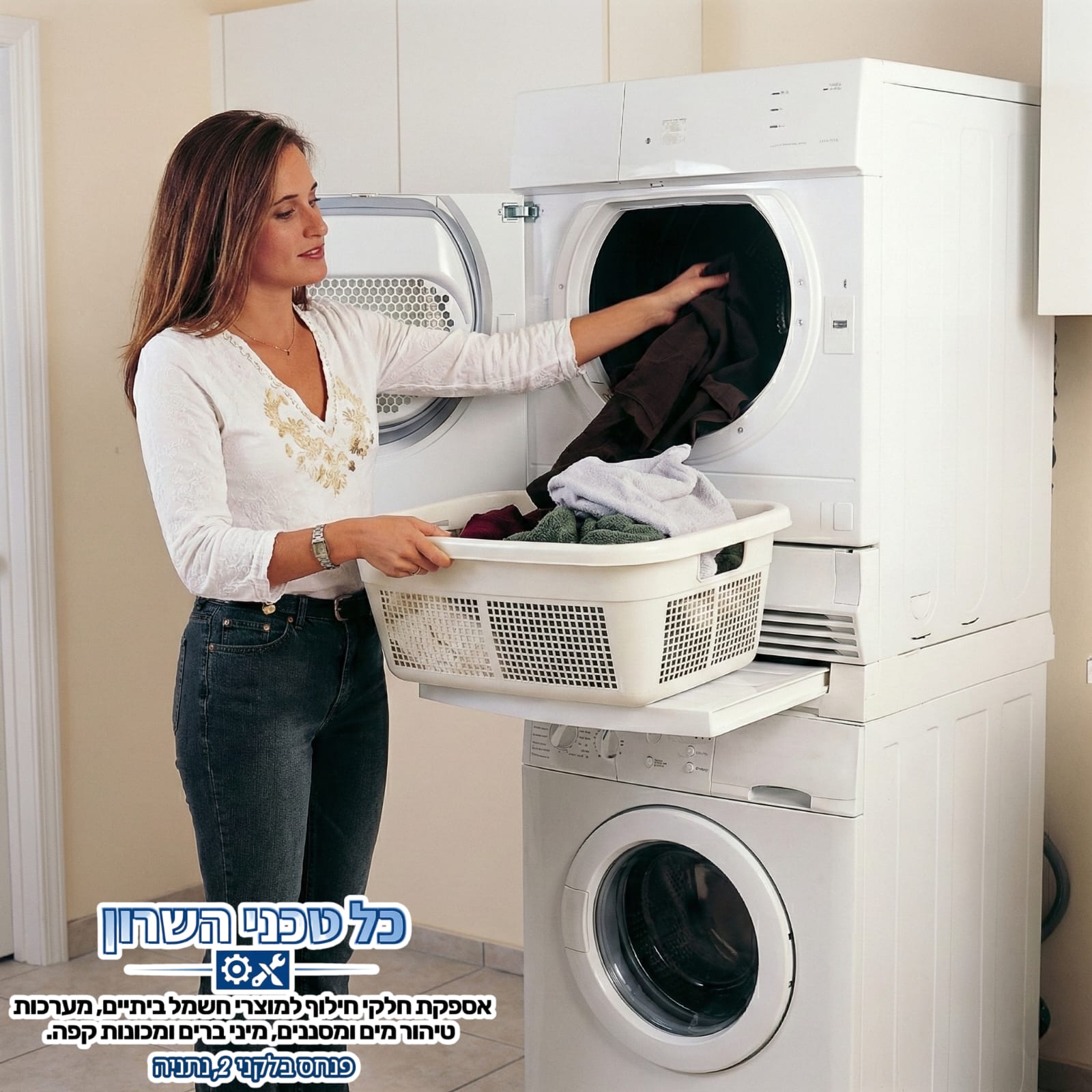 שימוש: הצבת מייבש מעל מכונת כביסה
